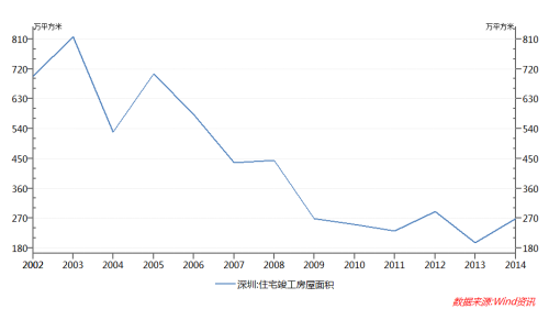 如图2所示,自2010年起,深圳住宅竣工房屋面积都在底部徘徊,只有峰值时的三分之一到四分之一,而图表中的统计数字还是包括保障房的竣工面积的,而保障房对商品房价格的影响将是笔者下一篇文章要分析的主题。