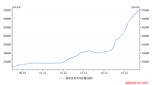 以图3中深圳样本住宅的价格为基准,自2010年推出调控政策后,深圳房价从2012年5月的23779元/平方米上涨到2016年9月的55001元/平方米,总共上涨了31222元/平方米,上涨比例为130%。